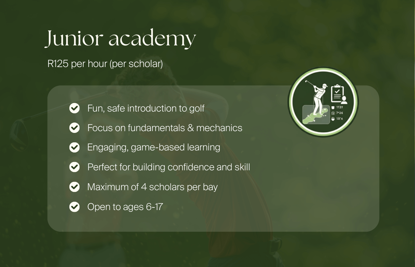 Our junior academy focuses on fundamental skills, etiquette, and confidence in a fun, tech forward environment!